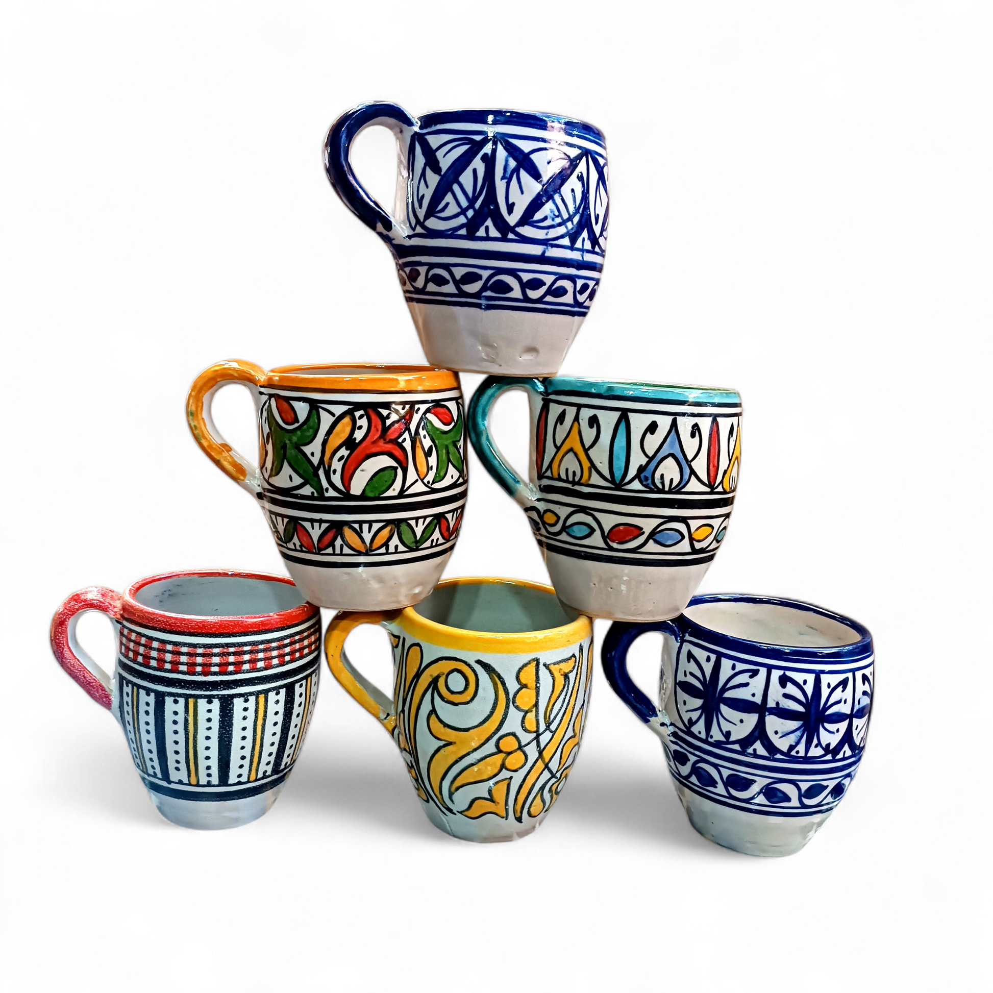 Große Becher aus handbemalter und handgefertigter Keramik aus Fes (Marokko).