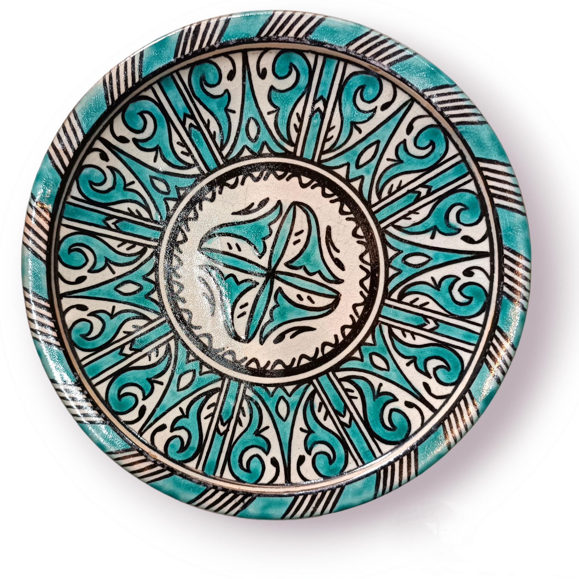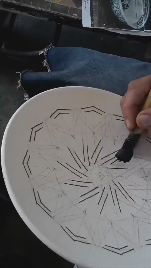 Each plate is shaped and painted by hand using time-honored techniques from the city of Fez. Made from premium gray clay and fired in a wood-burning kiln, these plates showcase the authentic beauty of Moroccan craftsmanship.