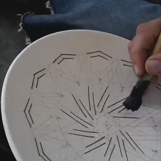 After being hand-molded and bisque-fired, every plate is carefully glazed and hand-painted in rich shades of green and gray — a timeless color combination that reflects both nature and tradition. The wood firing process adds subtle textures and natural variations, making each plate truly unique.