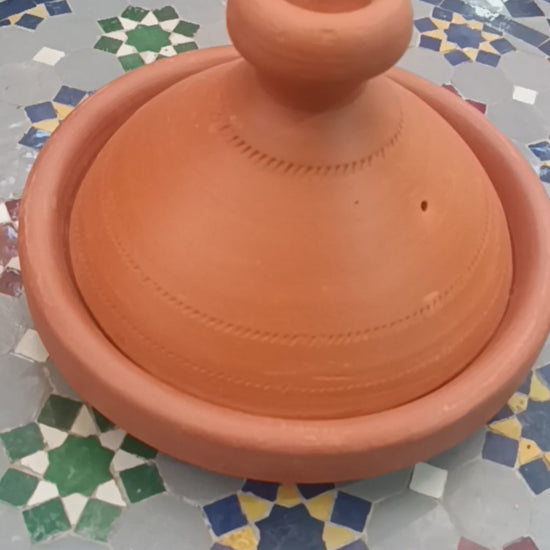Bring the heart of Moroccan cuisine to your kitchen with this authentic handcrafted tagine, made from natural red clay and delicately hand-painted by skilled artisans in Morocco. Designed for both cooking and serving, this traditional piece is perfect for slow-cooked stews, vegetables, meats, and more.