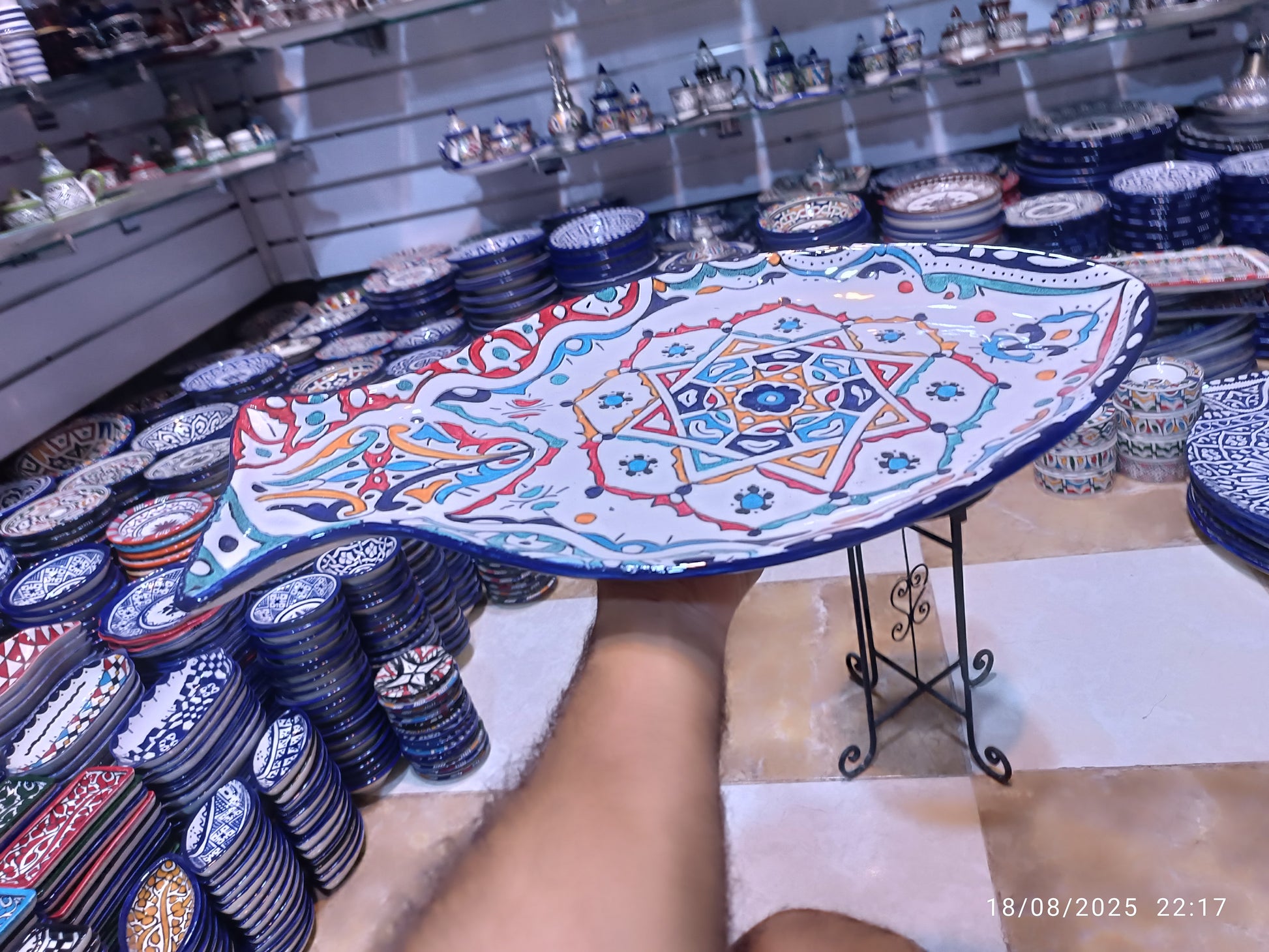 With its generous size of 30 cm wide and 50 cm long, this platter is perfect for serving main dishes, seafood, or as a decorative centerpiece that reflects Moroccan elegance. Each piece is unique, lead-free, and authentically crafted, making it a true collectible of Moroccan artistry.