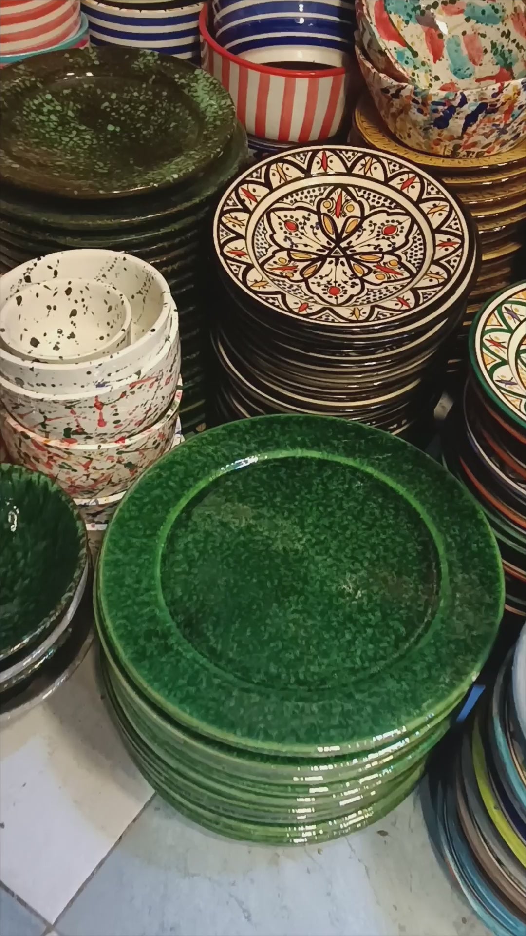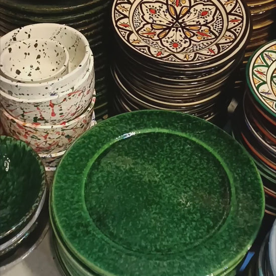 Elevate your dining experience with this stunning set of handcrafted green plates, made from natural red clay by master artisans in Fez, Morocco. Each plate is a testament to Moroccan tradition, combining earthy materials with timeless design.