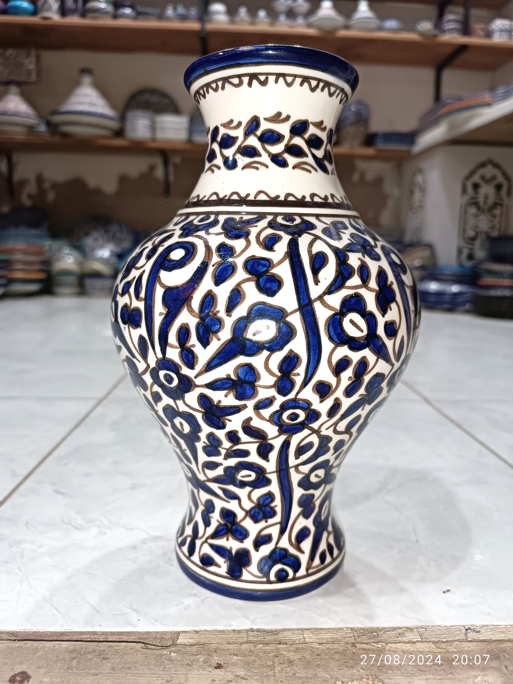 Handmade and hand painted ceramic vase from Fes (Morocco).