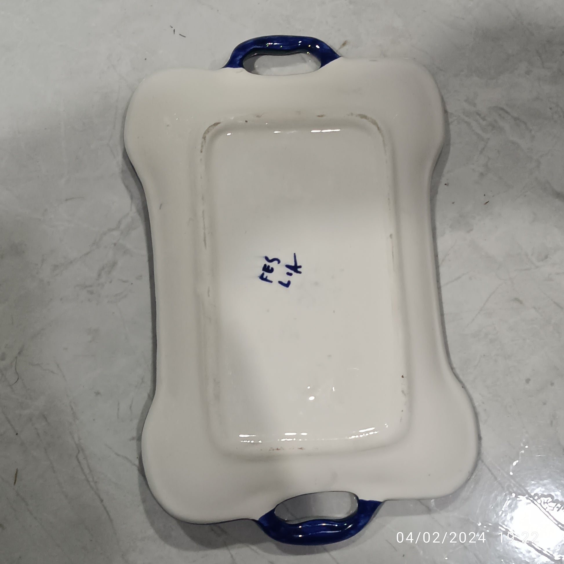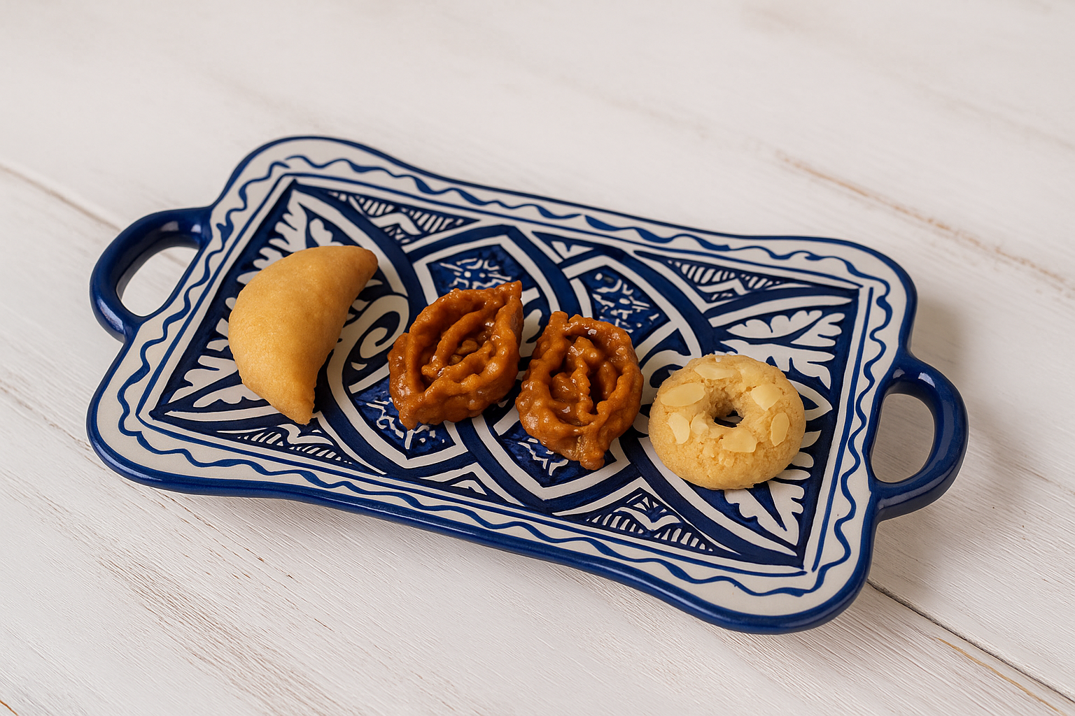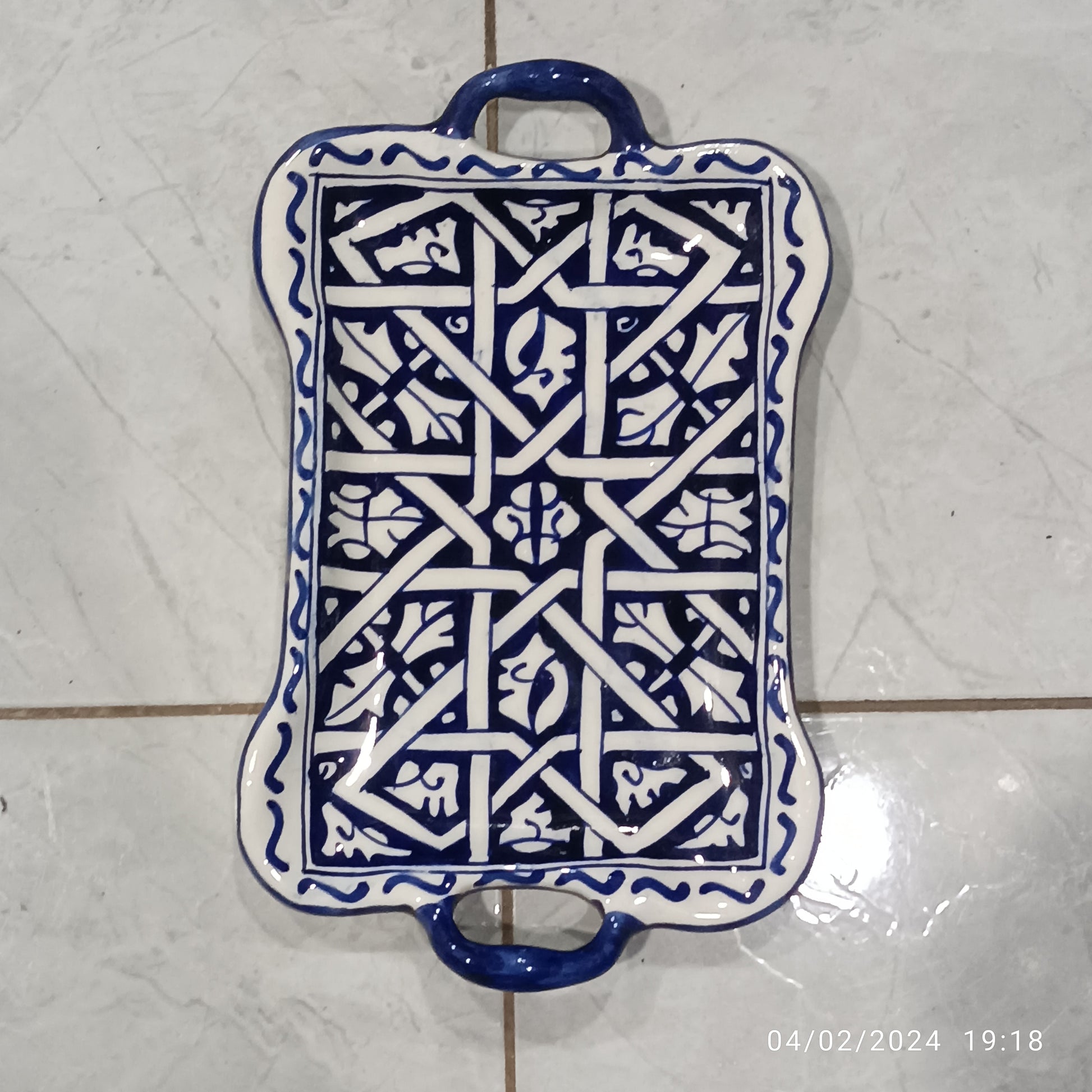 Experience the charm of Moroccan craftsmanship with this set of 6 handcrafted rectangular trays from Fez. Made from glazed clay and adorned with intricate Amazigh and Andalusian patterns in rich cobalt blue, each tray is carefully painted by skilled artisans.