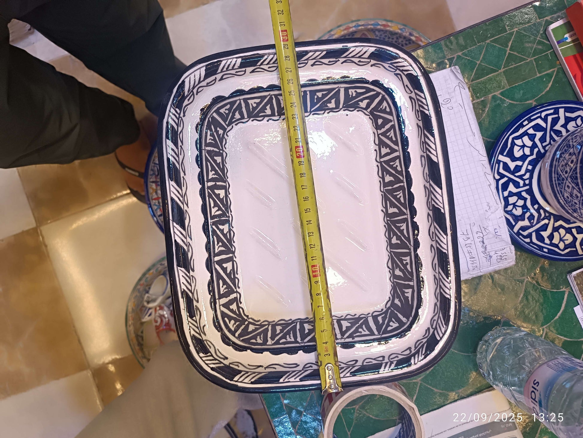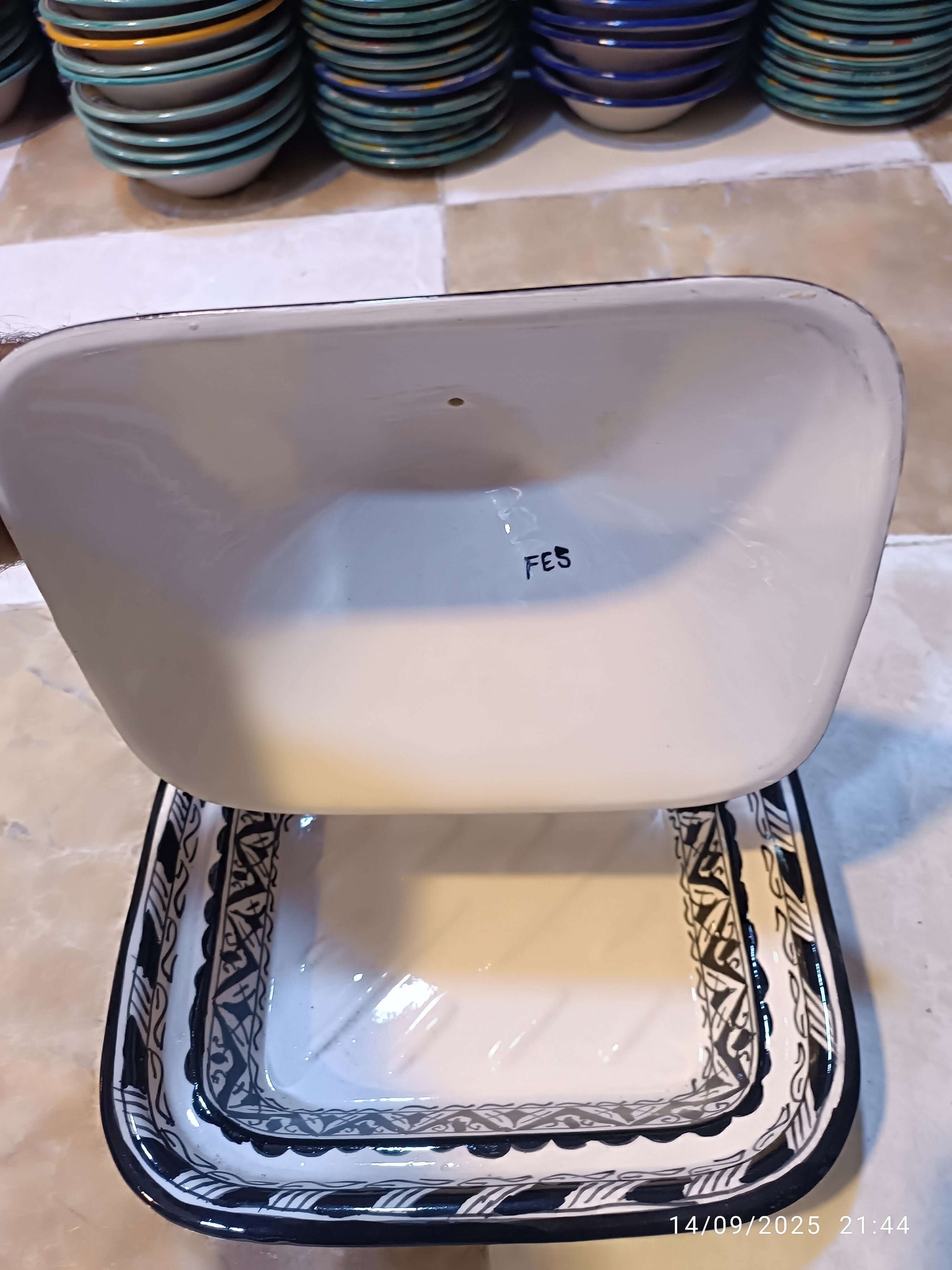 Bring a touch of Morocco to your kitchen with this square Moroccan tagine in classic black and white. Handcrafted by skilled artisans in Fez, this tagine is perfect for slow cooking and stylish serving. Its square shape (24 cm wide x 29 cm long x 3 cm deep) adds a modern twist to a traditional design, while the durable glazed ceramic distributes heat evenly for perfectly cooked dishes.