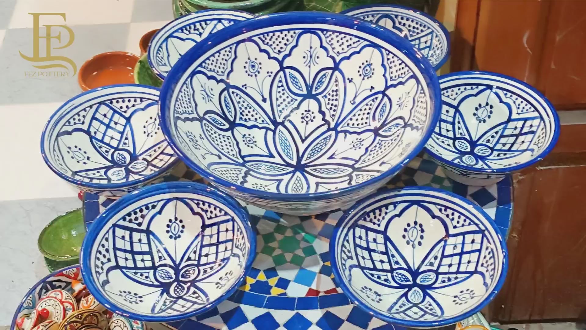 Ceramic Bowl Set 6 Small + 1 Large – Traditional Fez Pottery Free Shipping 360.00 Buy Online Fez medina pottery Best Top Picks